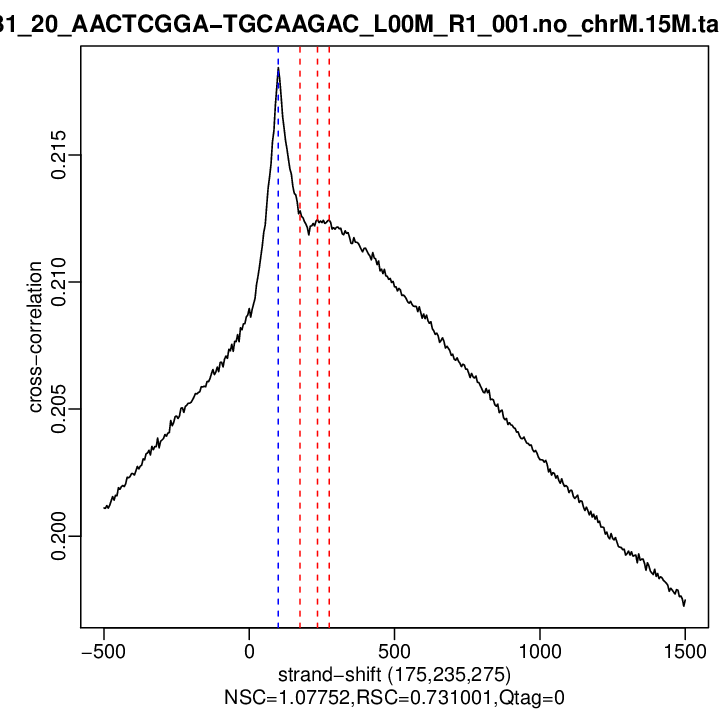 | Cross-corr. plot | ./qc/rep1/P381_20_AACTCGGA-TGCAAGAC_L00M_R1_001.no_chrM.15M.cc.plot.pdf